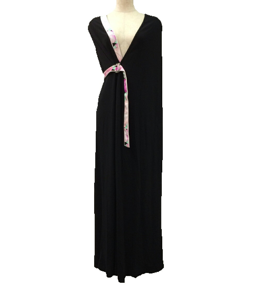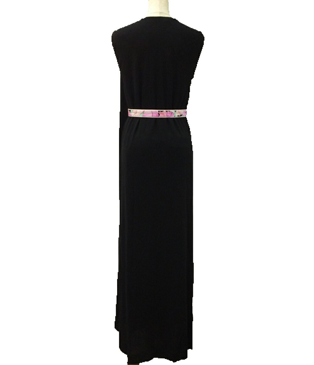 【50%OFFセール】【レオナール】LEONARD ノースリーブ リブ 切替え ワンピース ブラック L 【中古】【鑑定済・正規品保証】【送料無料】38810