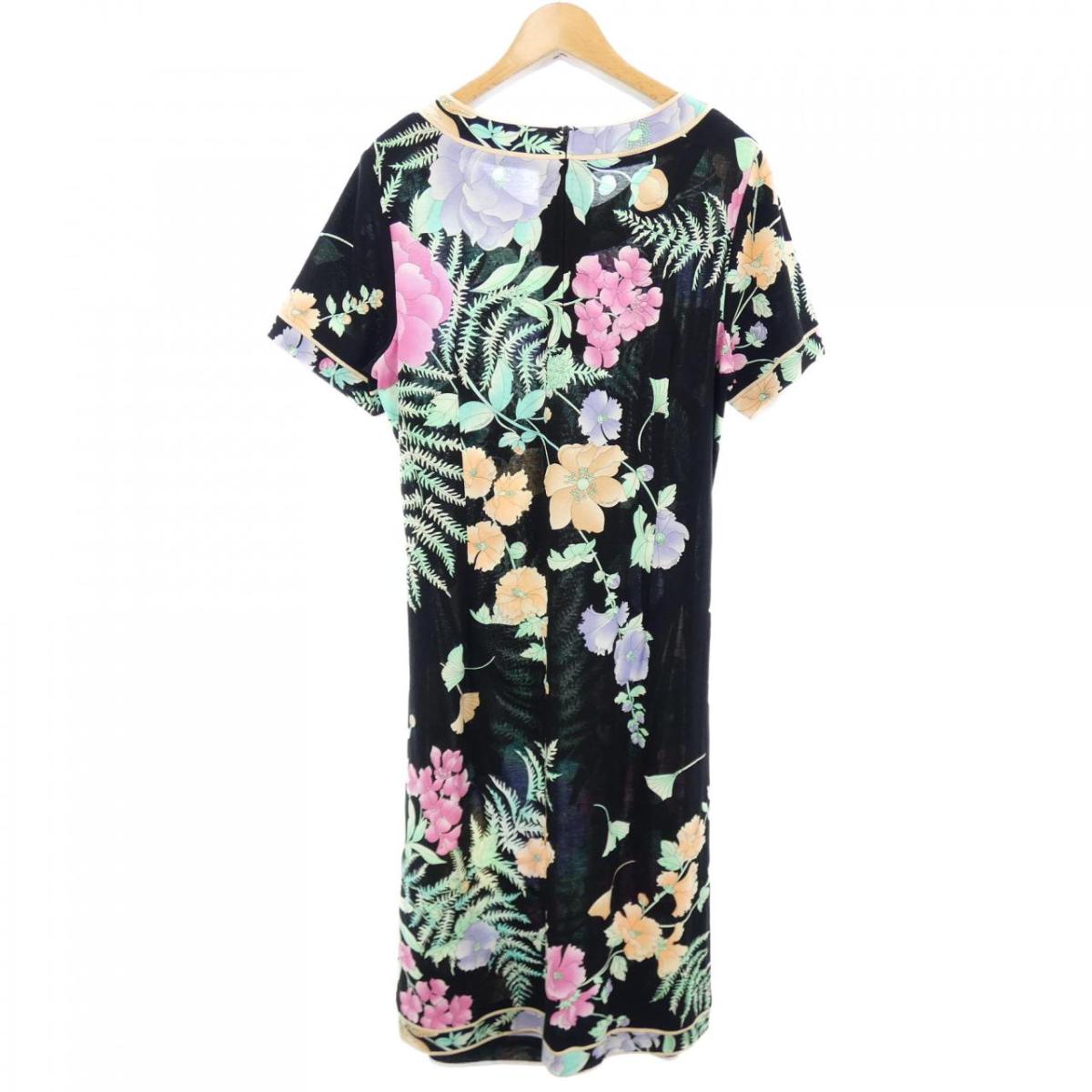 ★ゴールデンウィーク期間限定値引き★ 【中古】 レオナール [ LEONARD ]フリル フラワー ドレス ワンピース ブラック 黒 SIZE[40]レディース ワンピ 花柄SAランク E3C-25
