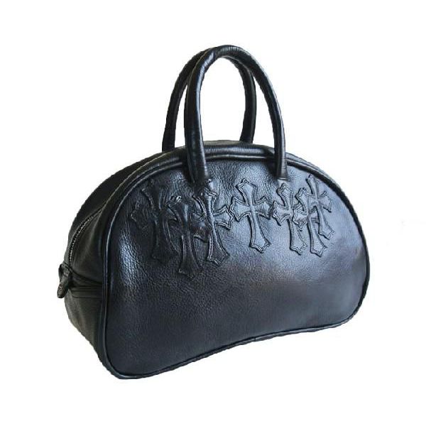 CHROME HEARTS クロムハーツ セメタリークロスパッチ ジムバッグ ミディアム レザー ブラック 黒 シルバーブランド ハンドバッグ ボストン メンズ 人気ブランド【中古】xx17-20277my