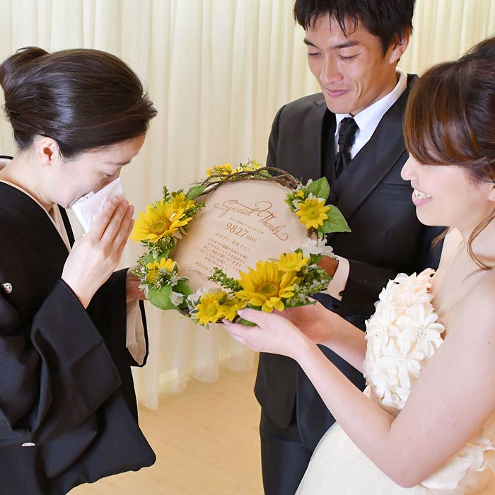 子育て感謝状 木製レーザー刻印「ひまわり」 結婚式のご両親へのプレゼント。