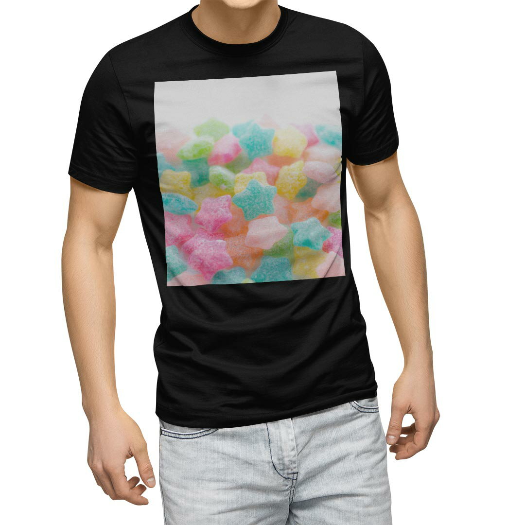 tシャツ メンズ 半袖 ブラック デザイン XS S M L XL 2XL Tシャツ ティーシャツ T shirt 黒 005886 写真 お菓子 星