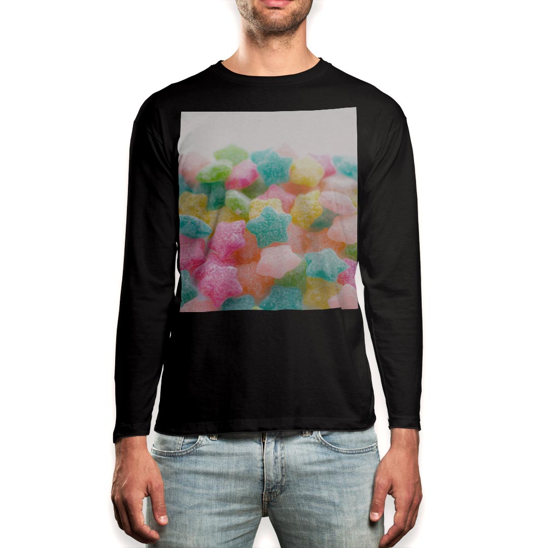 ロング tシャツ メンズ 長袖 ブラック デザイン XS S M L XL 2XL ロンT ティーシャツ 黒 black T shirt long sleeve 005886 写真 お菓子 星